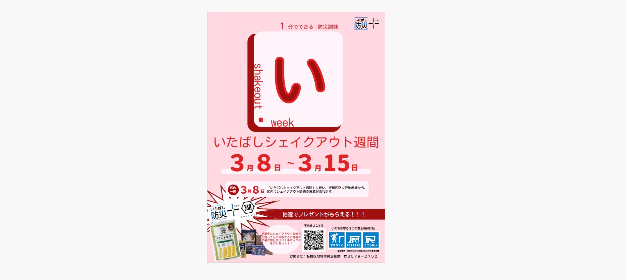 東京都 - 板橋区シェイクアウト 2026年03月08日 09:30~ 実施