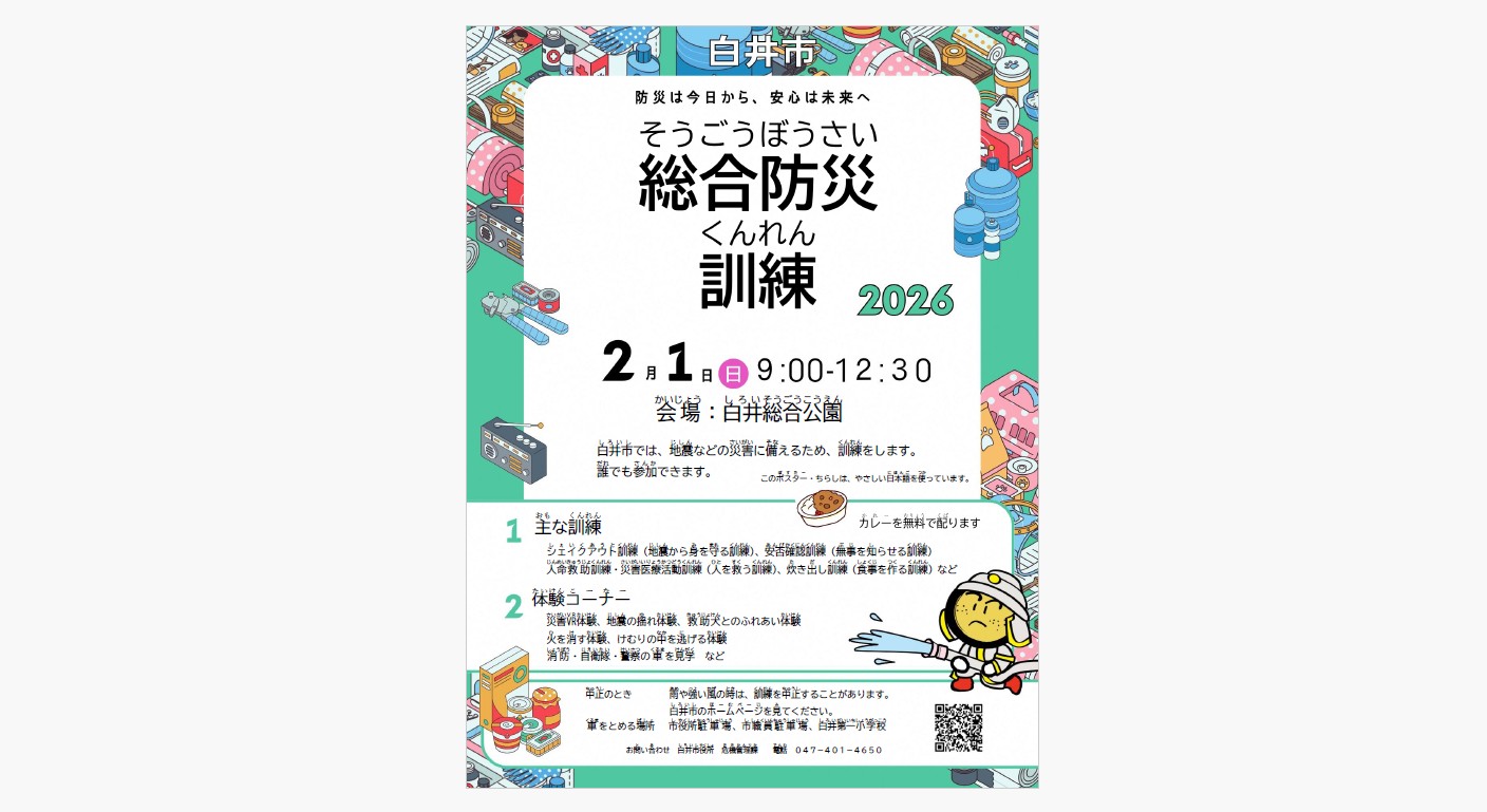 千葉県 - 白井市シェイクアウト訓練 2026年02月01日 09:00~ 実施